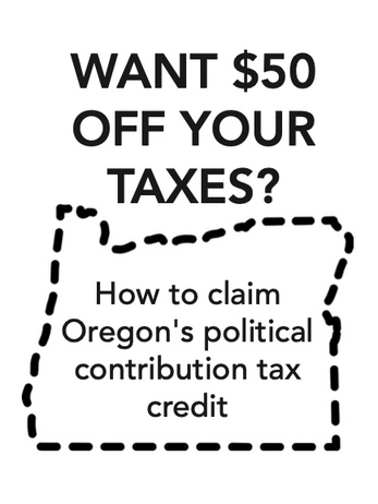 This mini-zine walks you through claiming the Oregon political contribution tax credit, resulting in $50 off your Oregon state taxes.